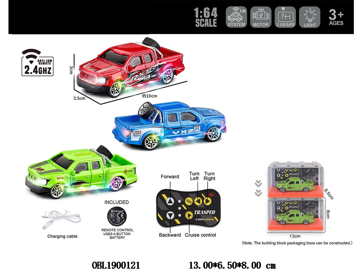 首页 > 遥控车 > 1:64 合金遥控车 带灯光 配USB线 3.7v锂电池包电 遥控1*CR2032包电 手机APP遥控 2.4G频率 3色混装