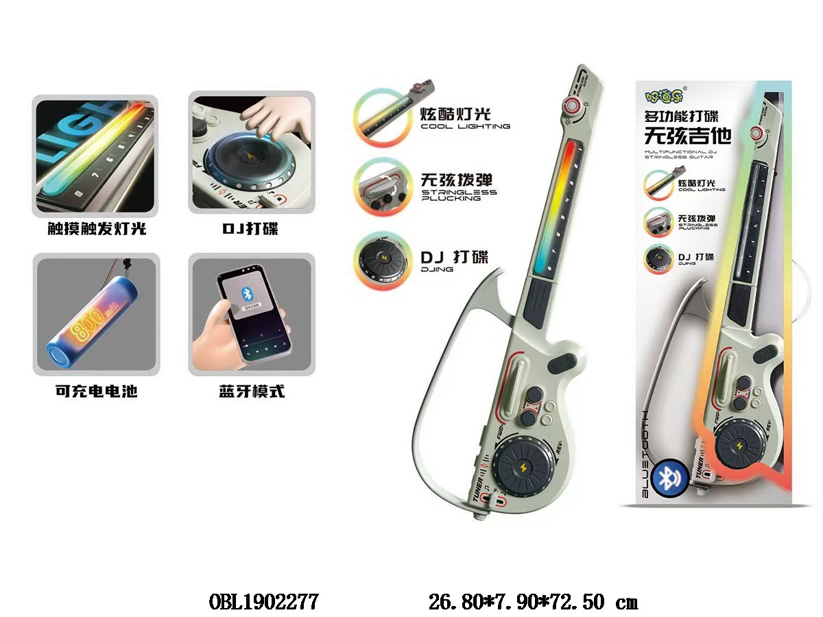 中英文版白色多功能打碟无弦吉他 带灯光