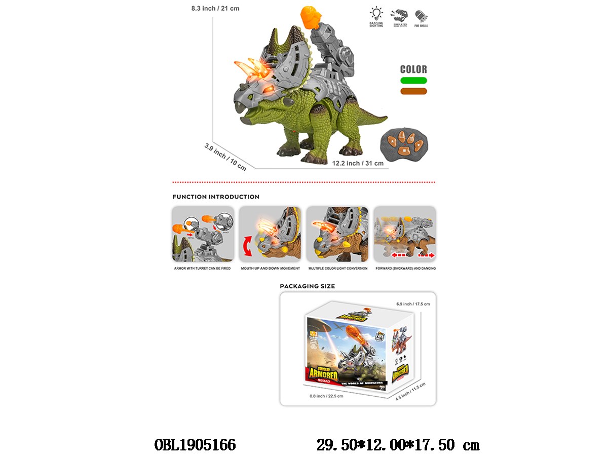 首页 > 遥控动物 > 红外线遥控机甲三角暴龙 带灯光声音跳舞 配大炮子弹 主体3*AA不包电 遥控器2*AA不包电 2色混装