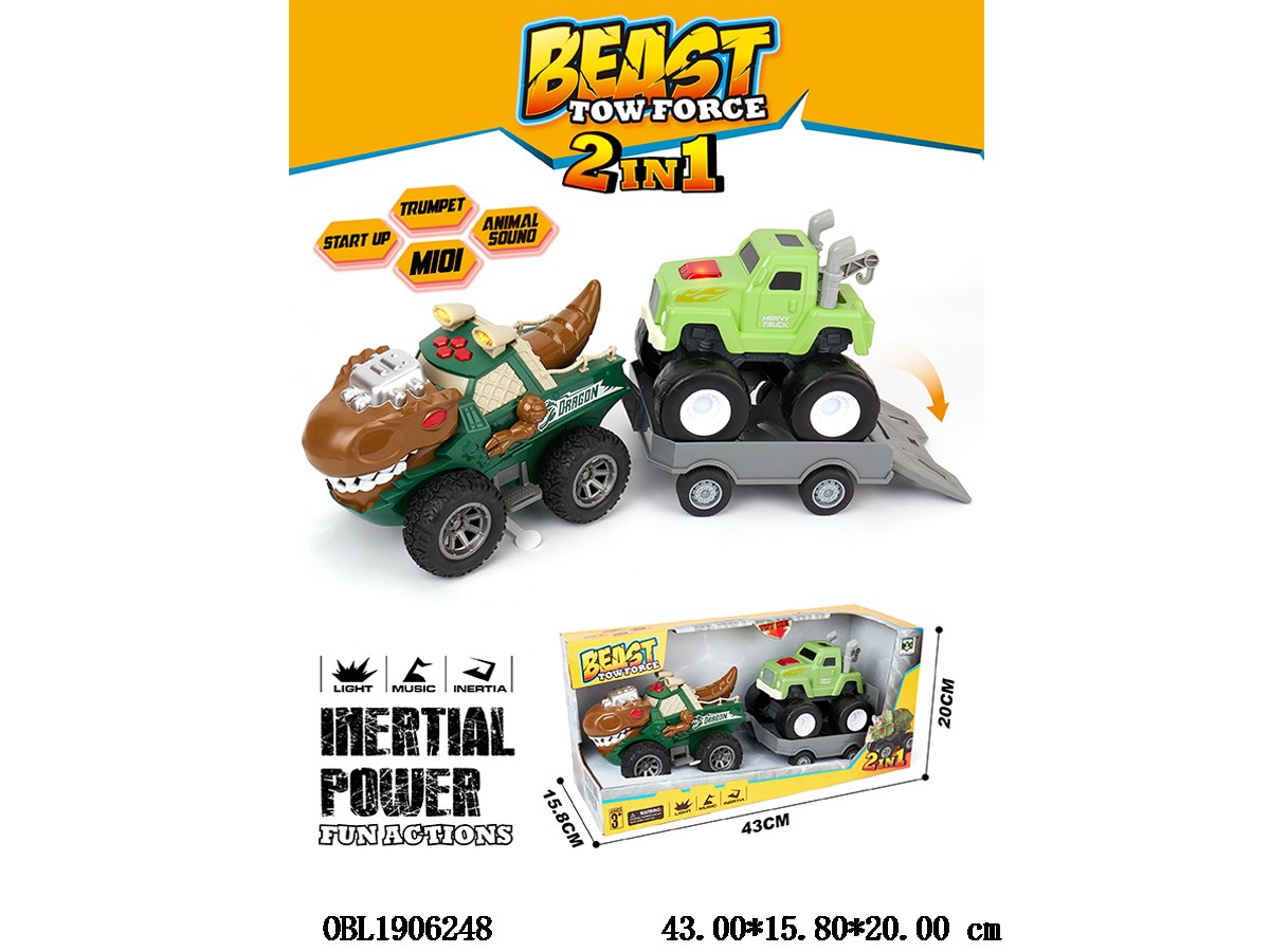 惯性霸王龙车带灯光音乐 拖1只灯光音乐滑行车 各3*AG13包电