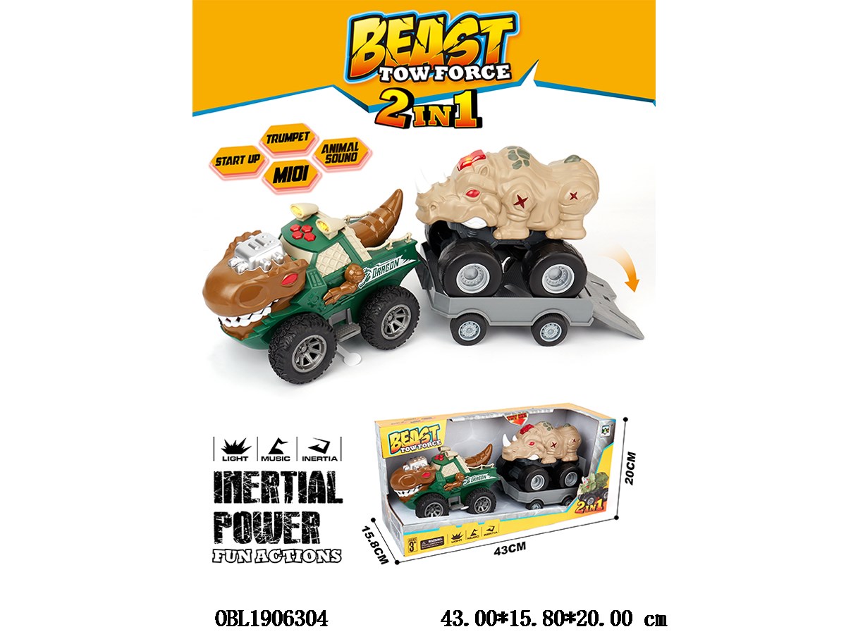 惯性霸王龙车带灯光音乐 拖1只灯光音乐滑行车 各3*AG13包电