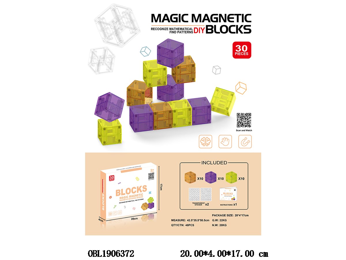 首页 > 磁性积木 > 益智磁力透明积木块 30PCS