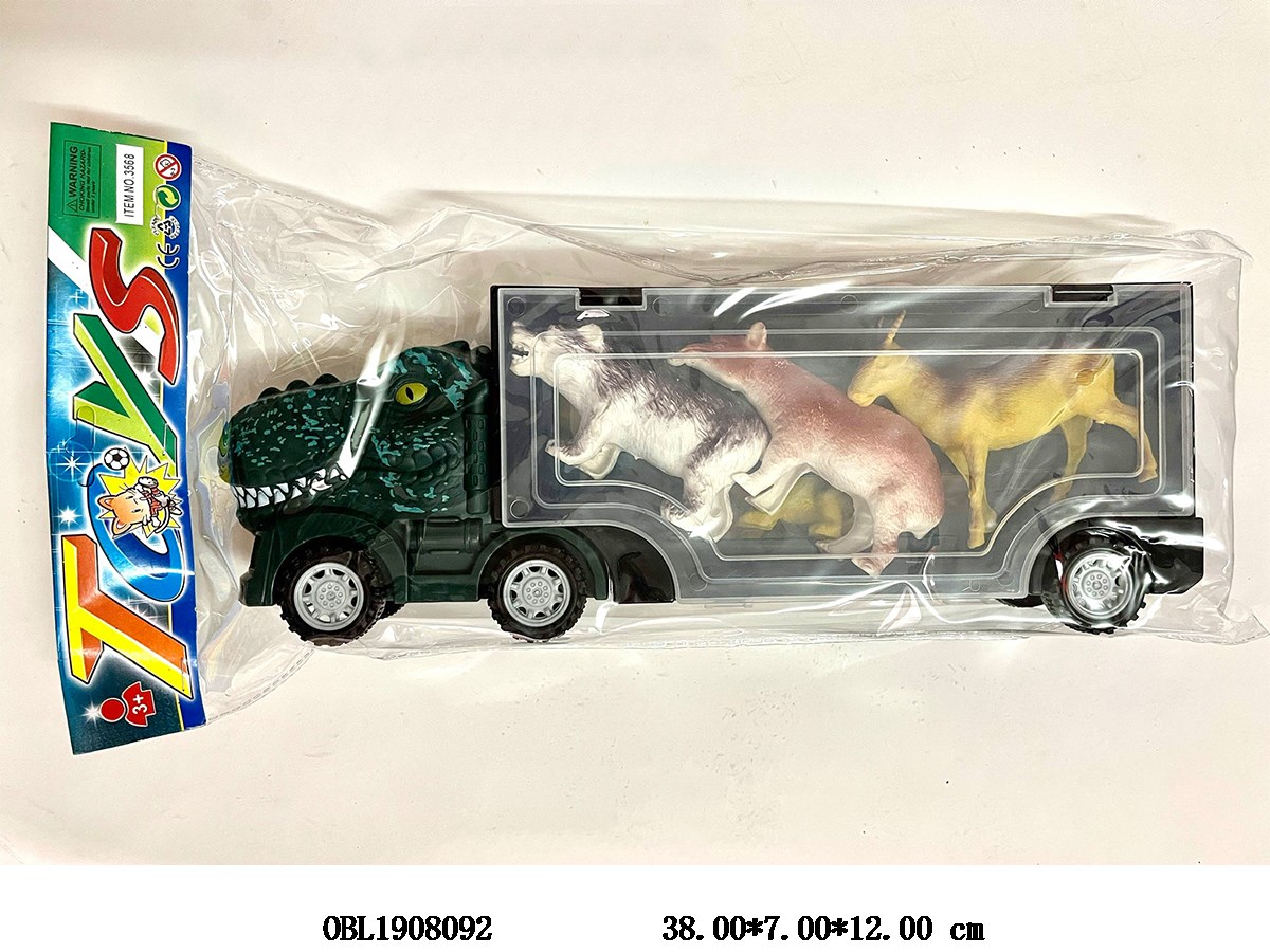 滑行恐龙车带6只硬料动物 2色混装