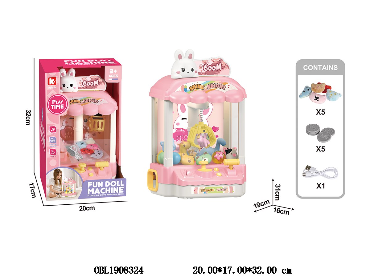 粉兔娃娃机套装带灯光音乐4*AA不包电 配USB线