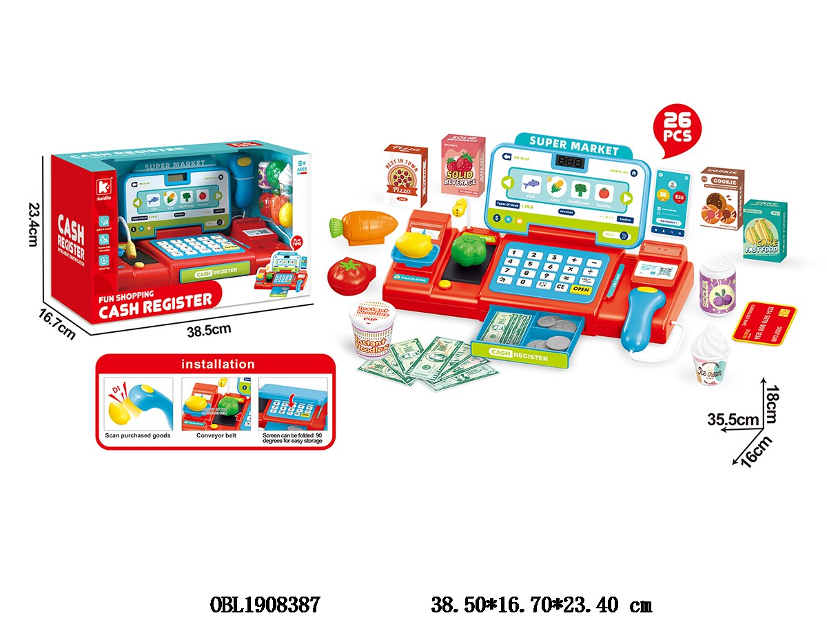 蓝色收银机套装带电动输送带 扫描器智能识别 刷卡 语音导购 3*AA不包电