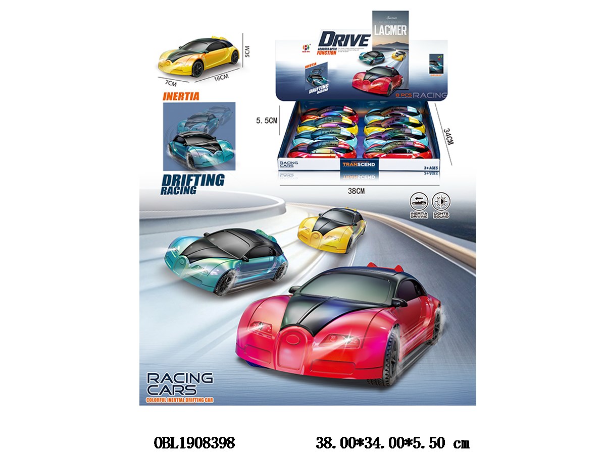 电动车带灯光声音漂移 3*LR44包电 3色混装 8只装一展示盒