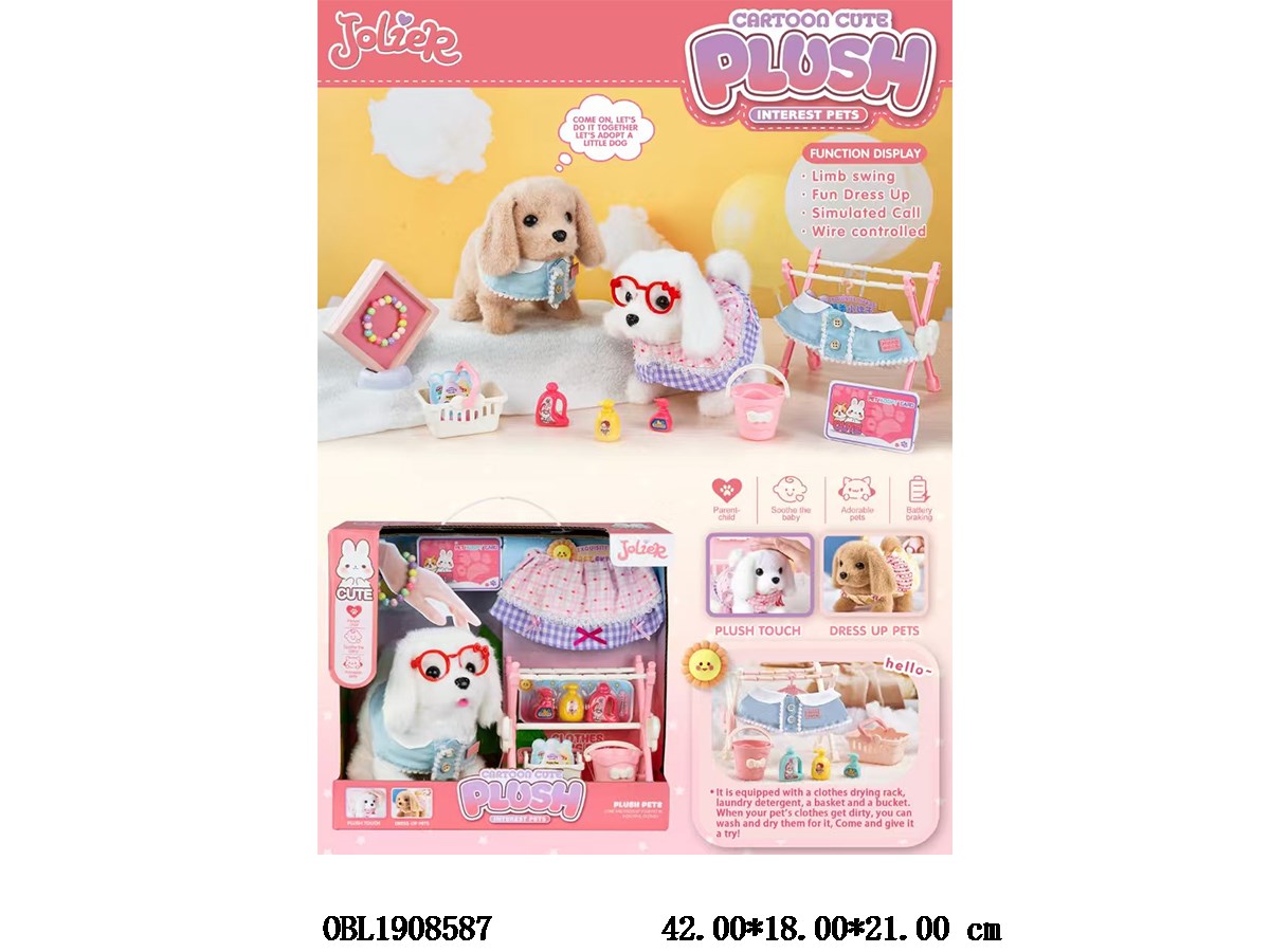 首页 > 电动动物 > 电动毛绒宠物狗套装 带叫声 摇头摆尾 2*AA不包电 2色混装
