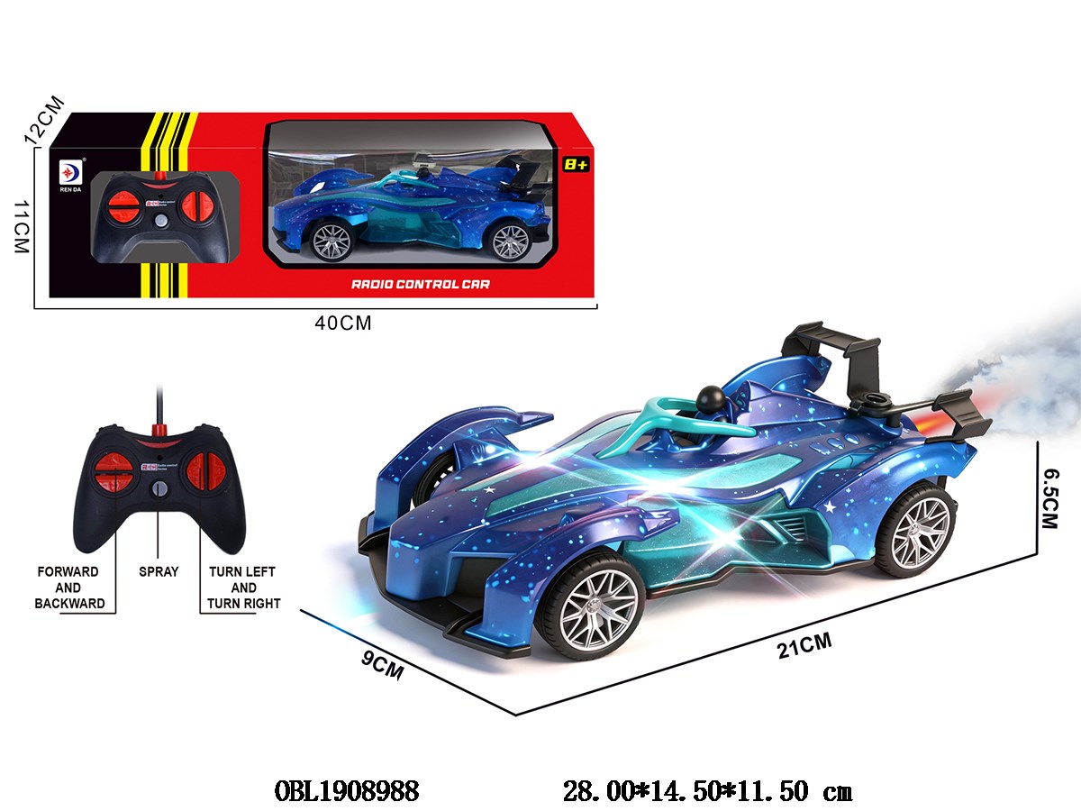 遥控赛车 带灯光喷雾 车身3*AA不包电 遥控2*AA不包电 2色混装
