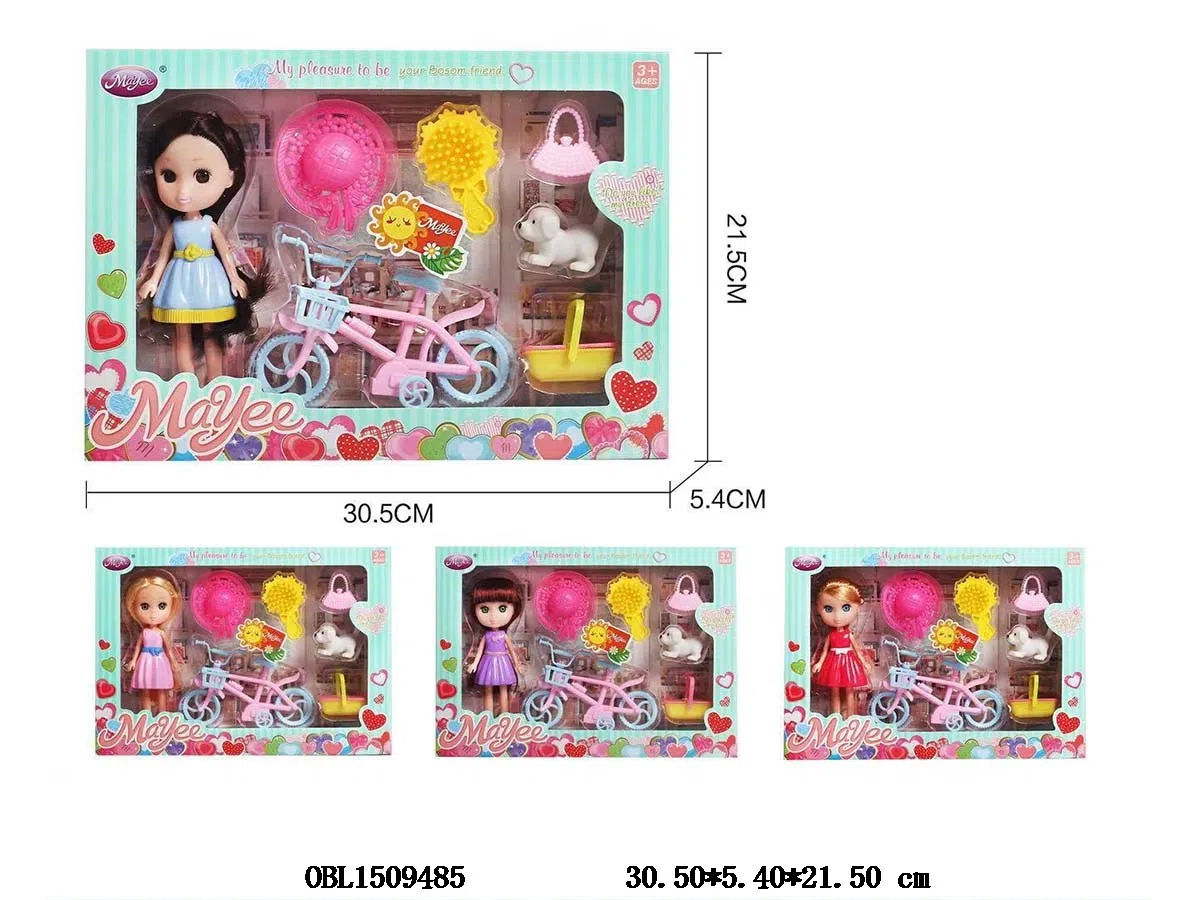 Home > Barbie Dolls & Barbie Sets > 6-inch solid body Bapyrene set with eye drops, bicycle body clothing, 1 color, 4 mixed outfits