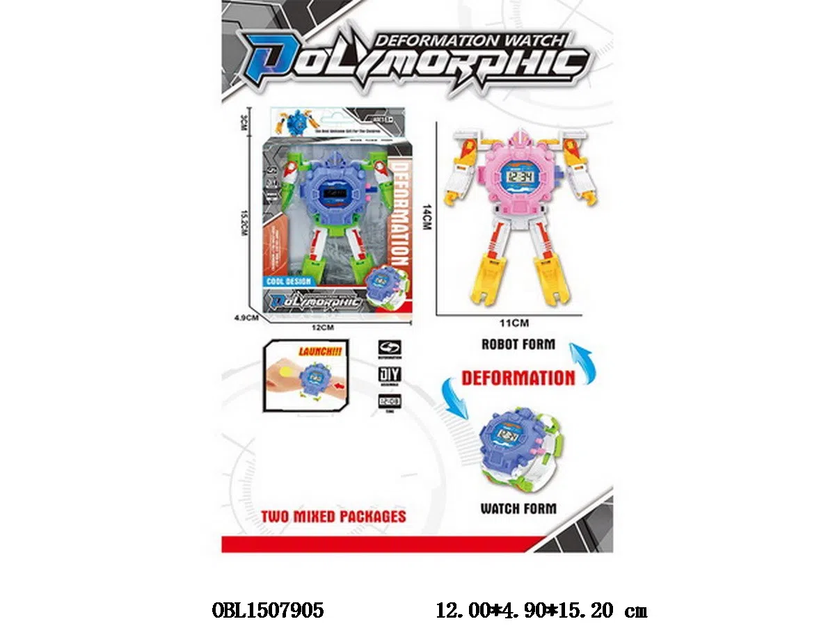 Deformation ejection electronic watch 1 * AG3 button cell, power pack, 2-color mixed package