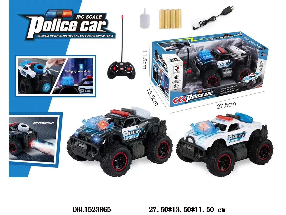 Home > R/C Car > Remote control off-road police car with spray and USB cable body 4 * AA with electric remote control 2 * AA without electric control 27 frequency 2-color mixed