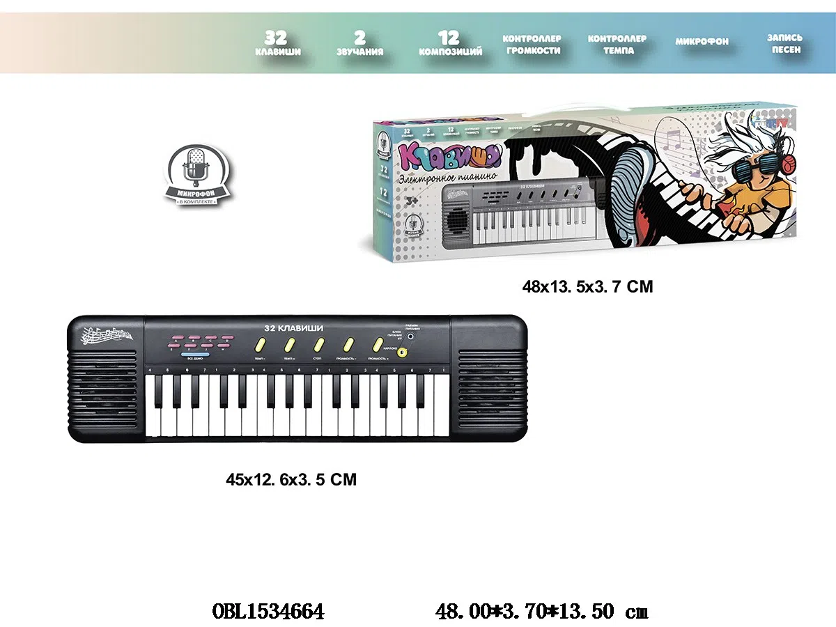 Russian version 32 key multi-function Electronic keyboard with microphone 4 * AA without power
