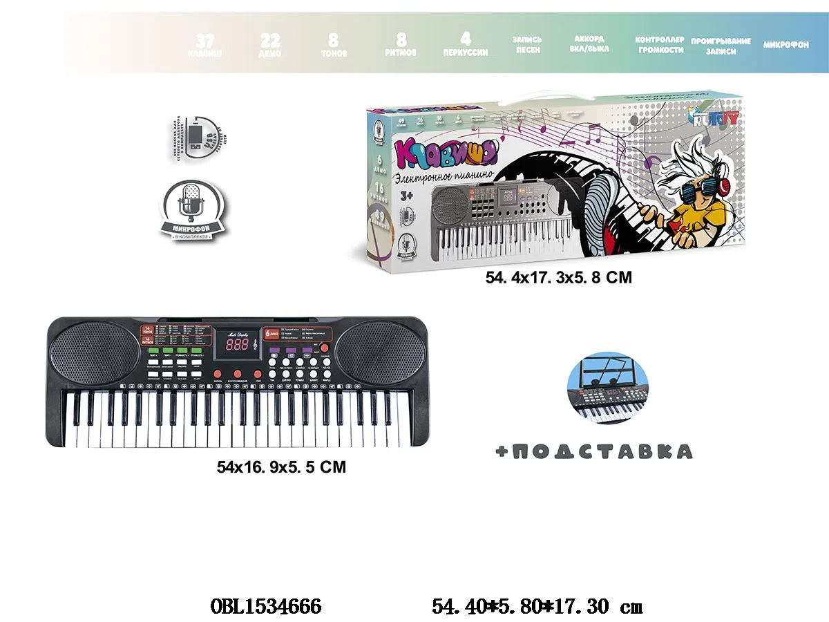 Home > Musical Toys > Russian version 49 key multi-function Electronic keyboard with microphone/USB cable/music stand 4 * AA without power