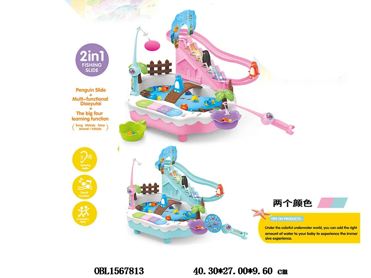 Home > B/O Fishing > Puzzle slide multifunctional electric fishing platform set with lighting, music, and USB cable 3 * AA, not including power, can be equipped with batteries or a charging bank