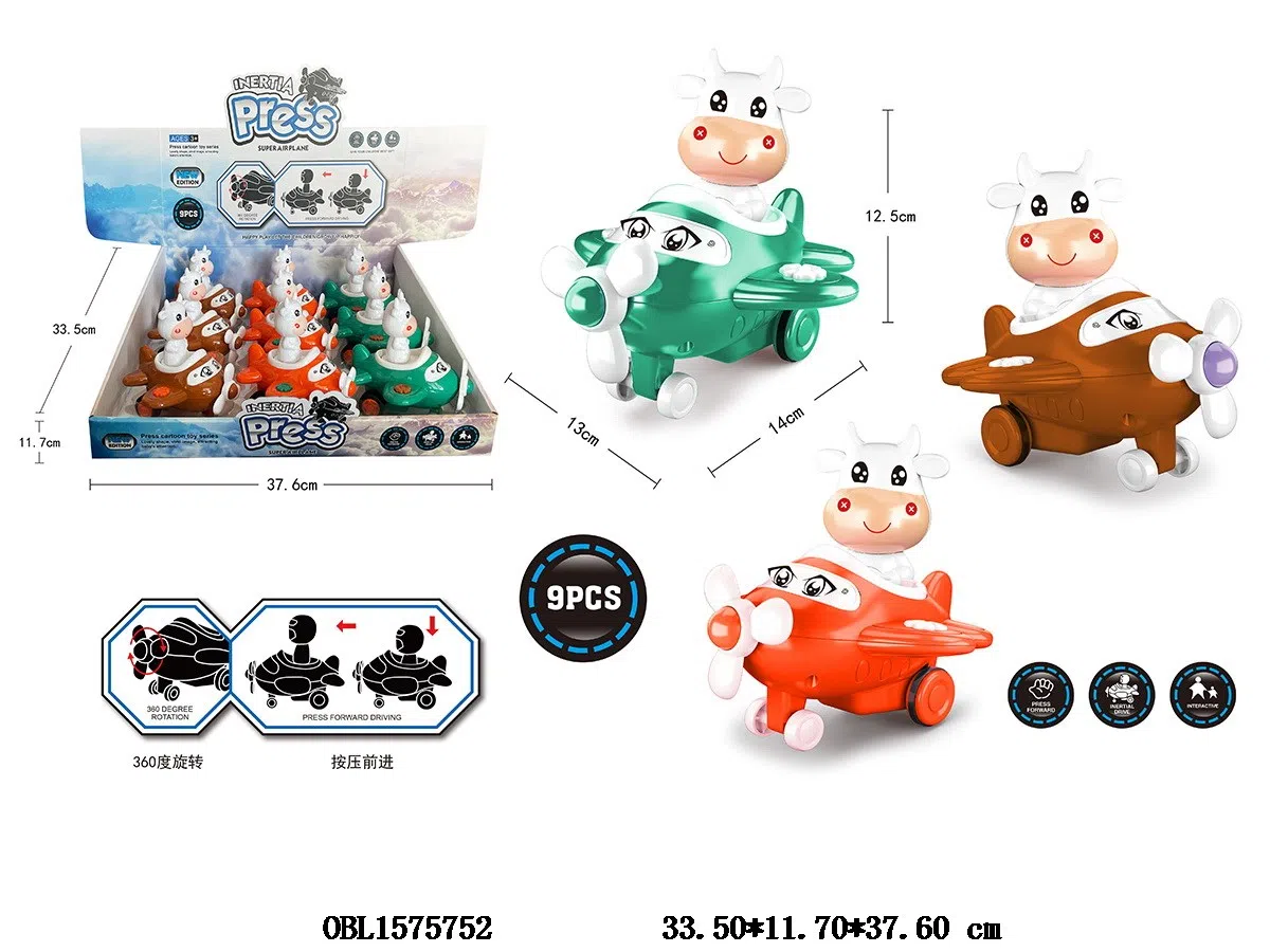 Xiaoniu Press Inertia Walking Aircraft 3-color Mixed Pack of 9 Units and 1 Display Box