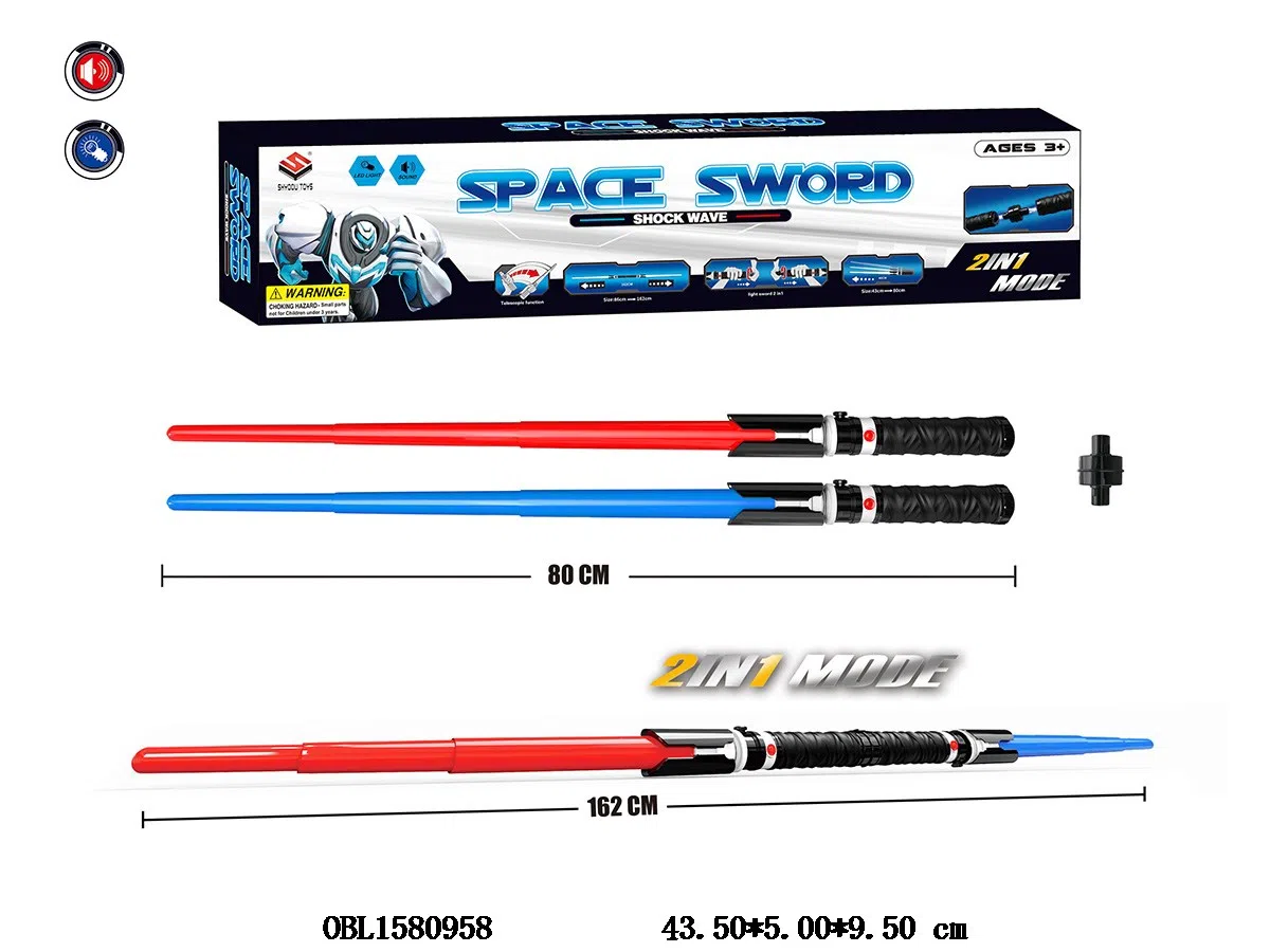 2-in-1 flashing sword with light and sound, and connector with expandable 6 * AAA power pack