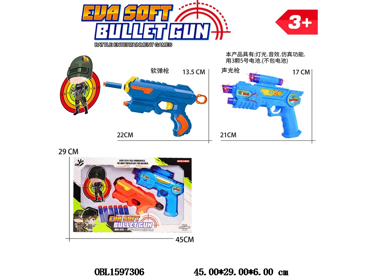 Home > Dart Gun > 2 Zhuang EVA soft ammunition guns/electric gun sets with lighting and music, 3 * AA batteries without charge