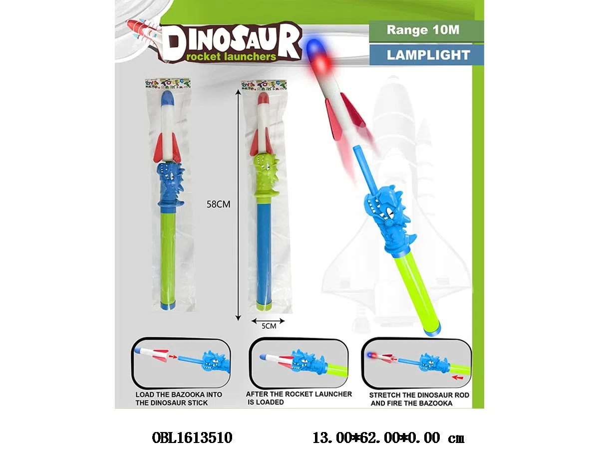 Catapult dinosaur rocket launcher with lighting, 3 * AG3 button battery pack, 2-color mixed package