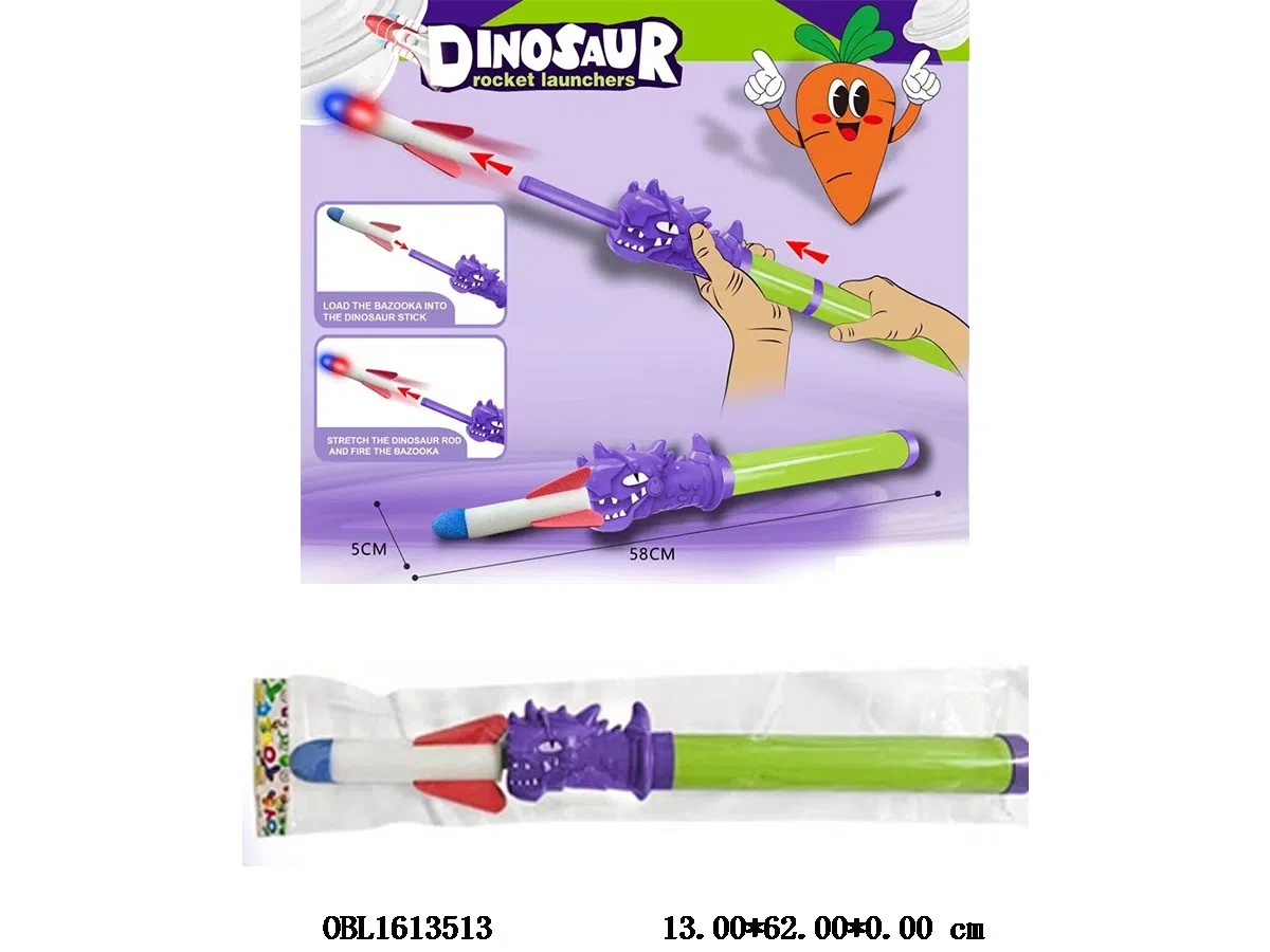 Catapult dinosaur rocket launcher with lighting, 3 * AG3 button battery pack, 2-color mixed package