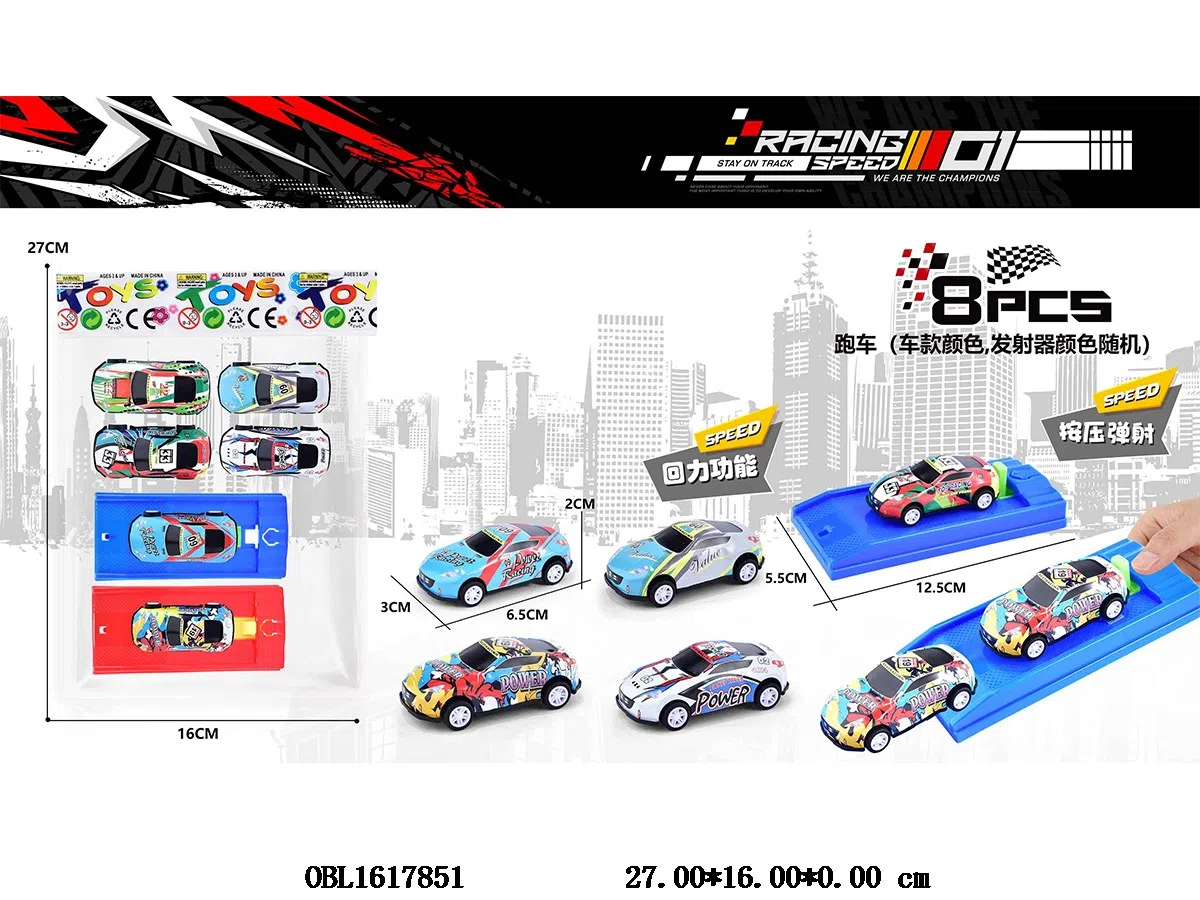 6 pieces of alloy iron sheet return graffiti sports car with 2 catapults, randomly colored