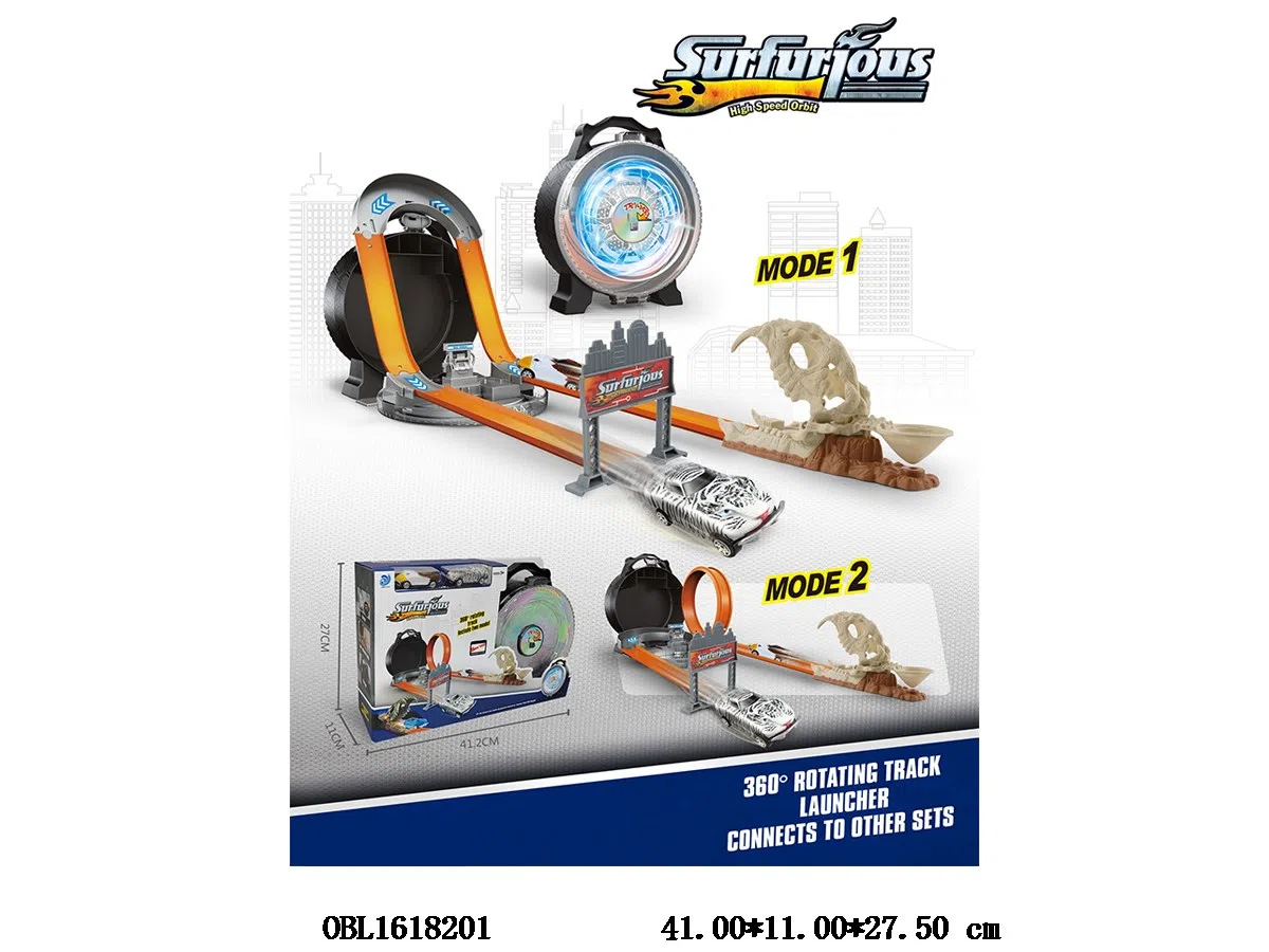 Press and eject dinosaur track alloy car set with 2 sliding car wheels with lights 3 * AG13 button battery pack
