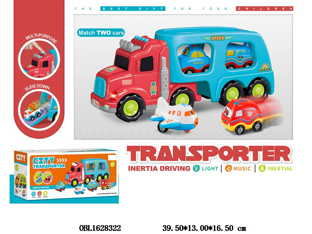 Inertial vehicle with lighting and music, carrying 4 inertial vehicles, 3 * AA, without battery pack