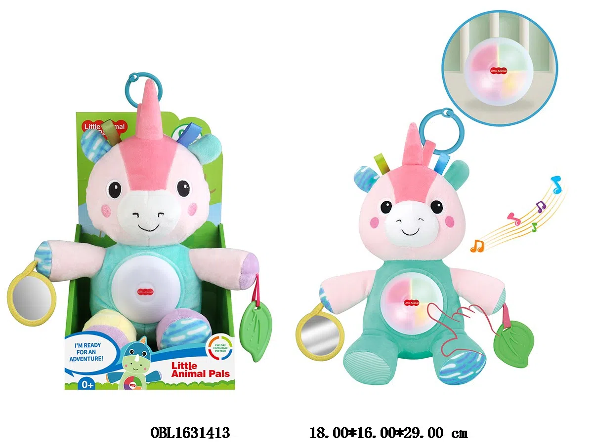 Plush soothing unicorn with light and music, hammock size 3 * AAA, no battery included