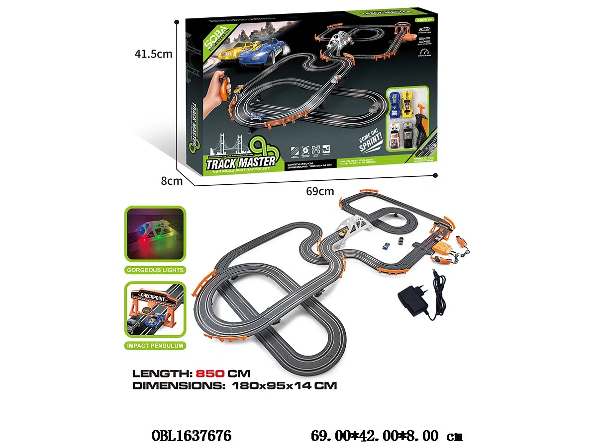 Home > Wire Controlled Railcar > 1: 64 electric racing track racing set with 9V adapter, 2-in-1 power supply, 2 track racing cars/wired remote control, 6 * AA, non battery included