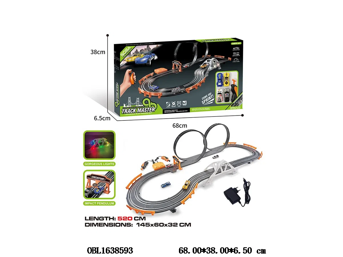 Home > Wire Controlled Railcar > 1: 64 electric racing track racing set with 9V adapter, 2-in-1 power supply, 2 track racing cars/wired remote control, 6 * AA, non battery included