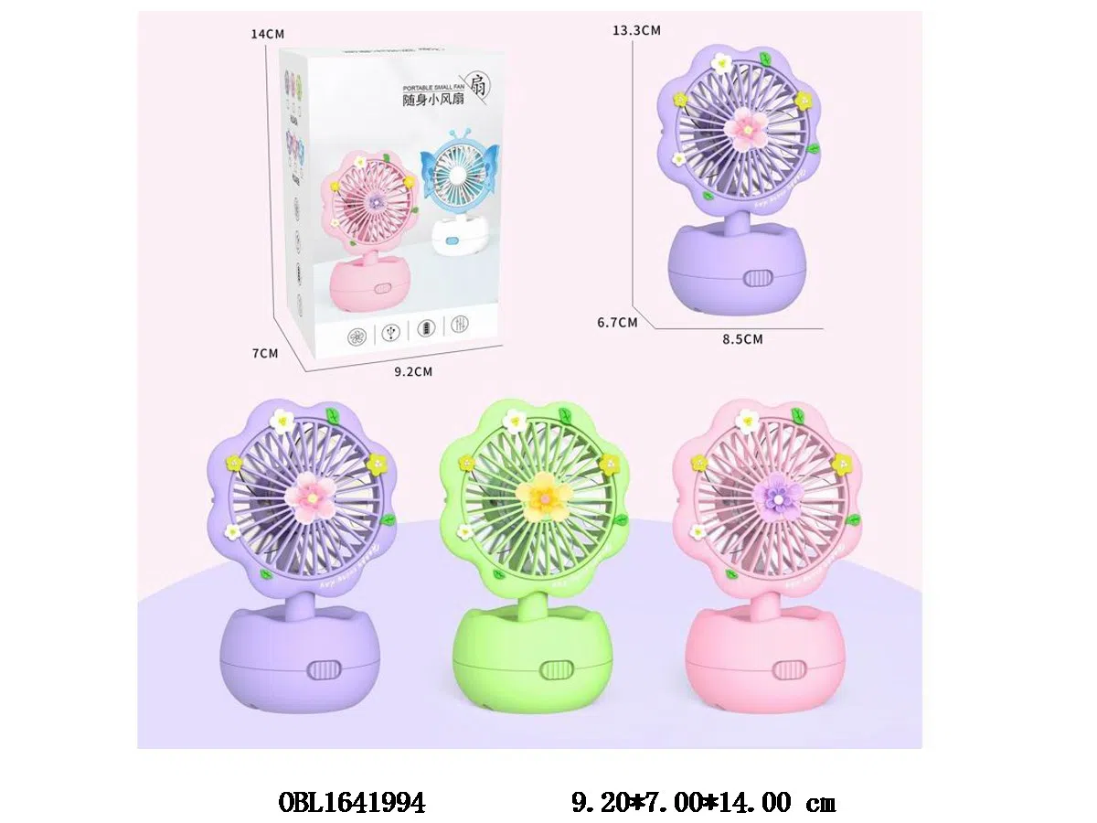 Home > Fan > Chinese and English versions of small flower desktop fan with USB cable, 250mAh lead-acid battery pack, 3-color mixed installation