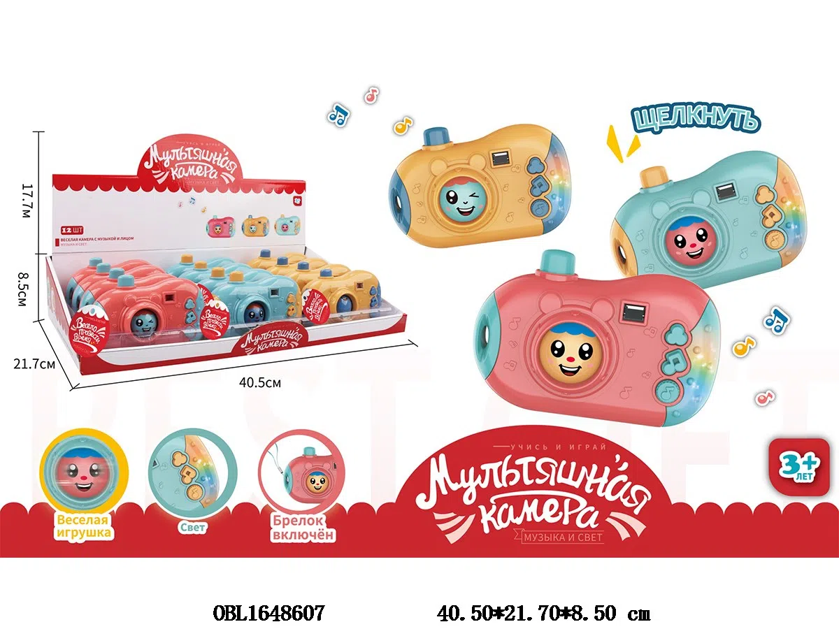 Russian face changing camera with lighting and music, 2 * AAA, no battery pack, 12 pieces, 1 display box