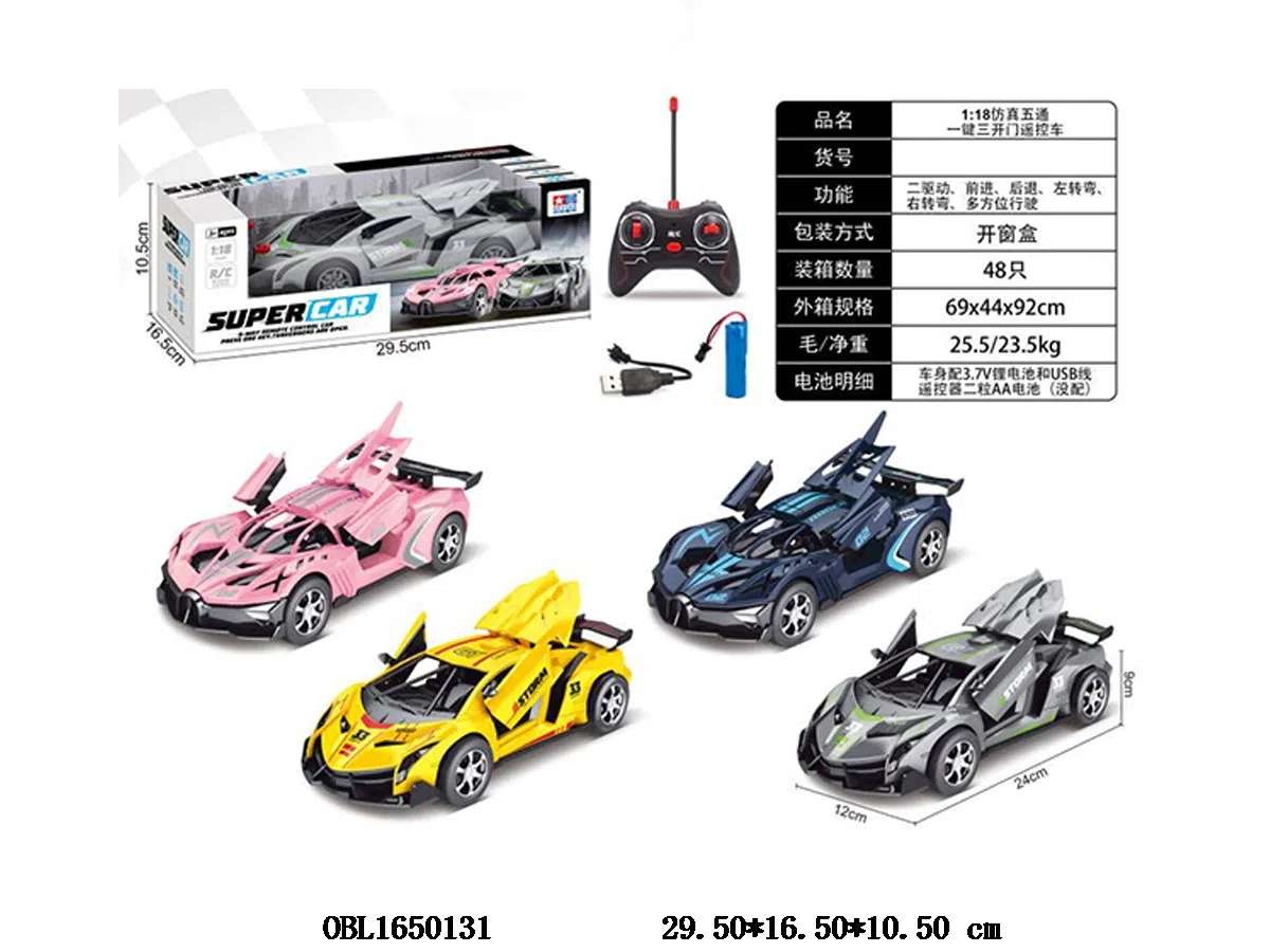 Home > R/C Car > 1: 18 Five way simulation remote control car set with lighting and USB cable, one button, three door opening, vehicle body 3.7V lithium battery, battery pack, remote control 2 * AA, no battery pack, 27 frequency, 2 models, 4-color mixed installation