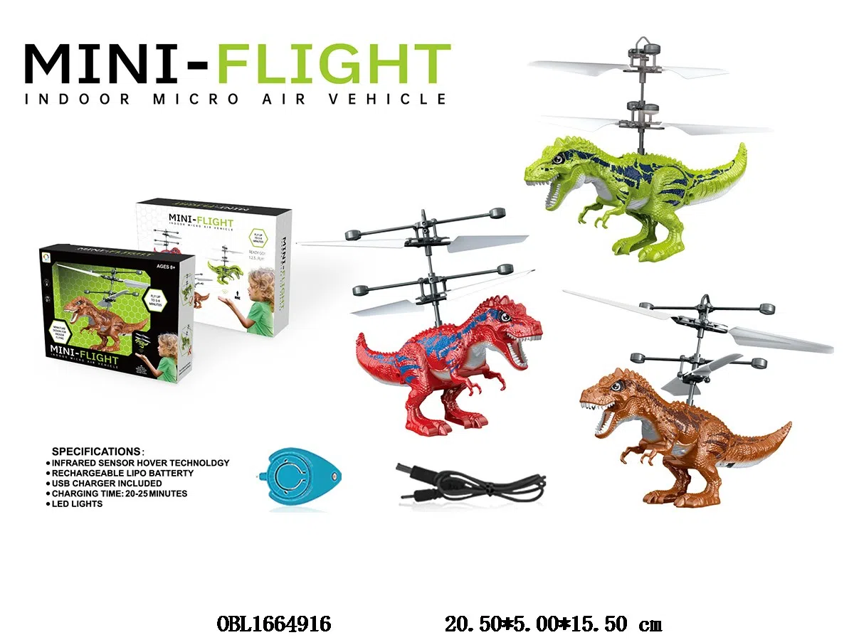Infrared induction Tyrannosaurus Rex UFO with USB cable body 3.7V package electric water droplet remote control 1 piece 3V1220 package electric 3-color mixed package