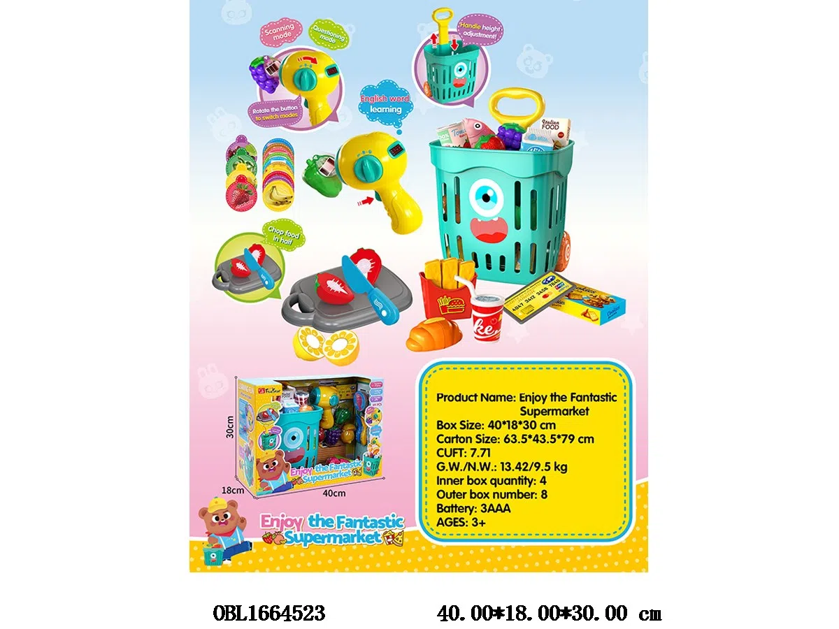 Shopping Basket Set Assembly Scan Code Gun with Light and Voice 3 * AAA No Power Pack