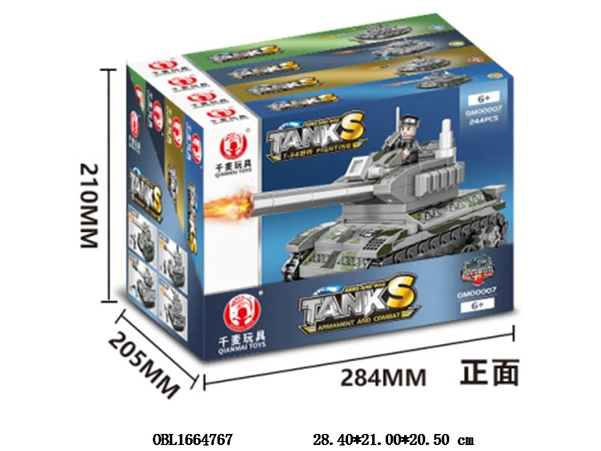 Chinese and English versions of puzzle building blocks, military tanks, 4-pack, 1 display box