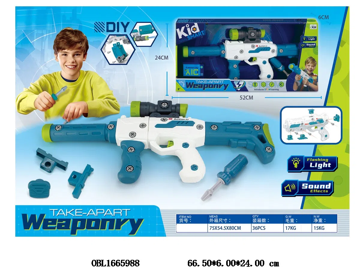 Dismantling gun set with light and sound, 3 * AAA, not powered