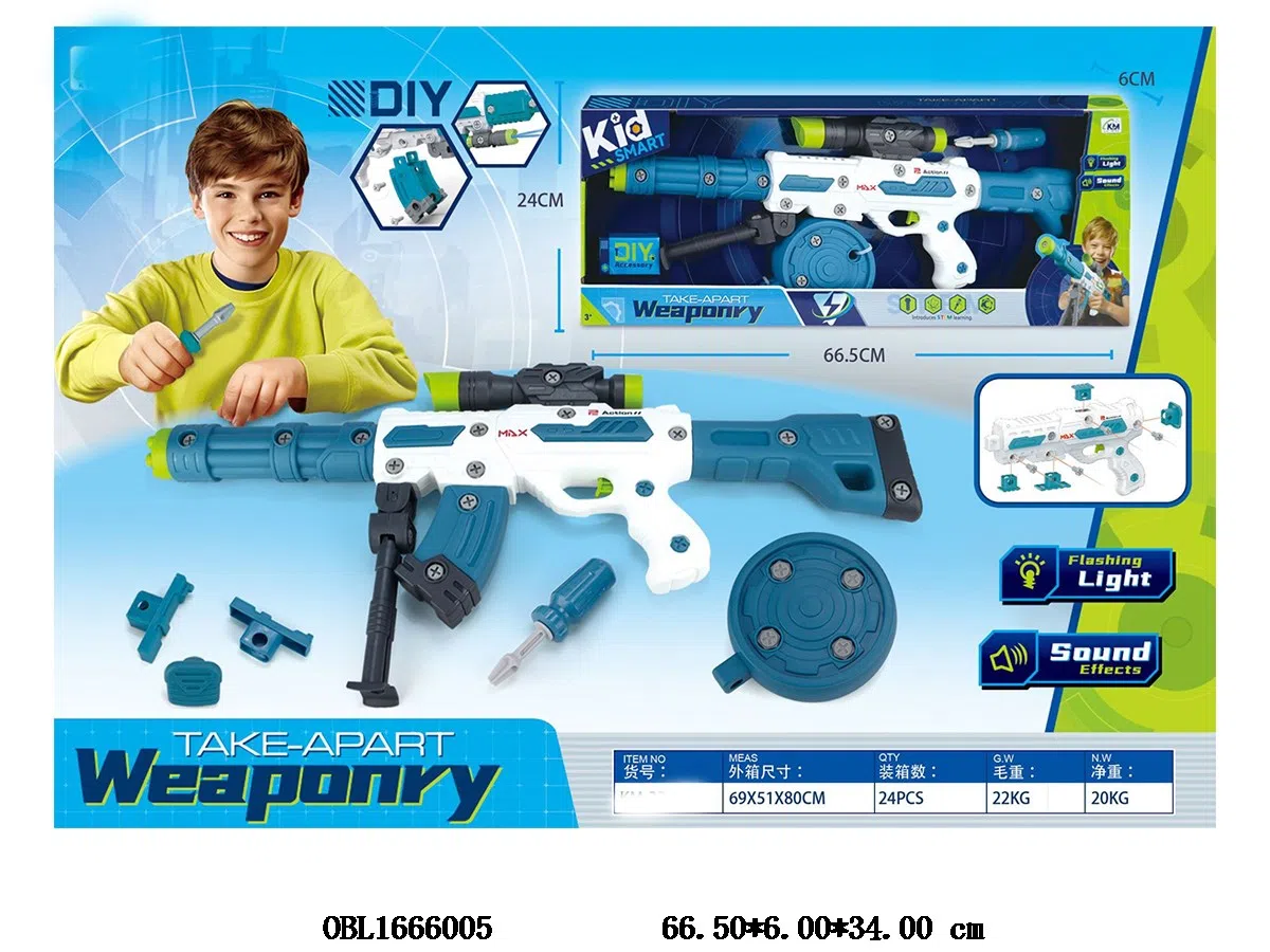 Dismantling gun set with light and sound, 3 * AAA, not powered