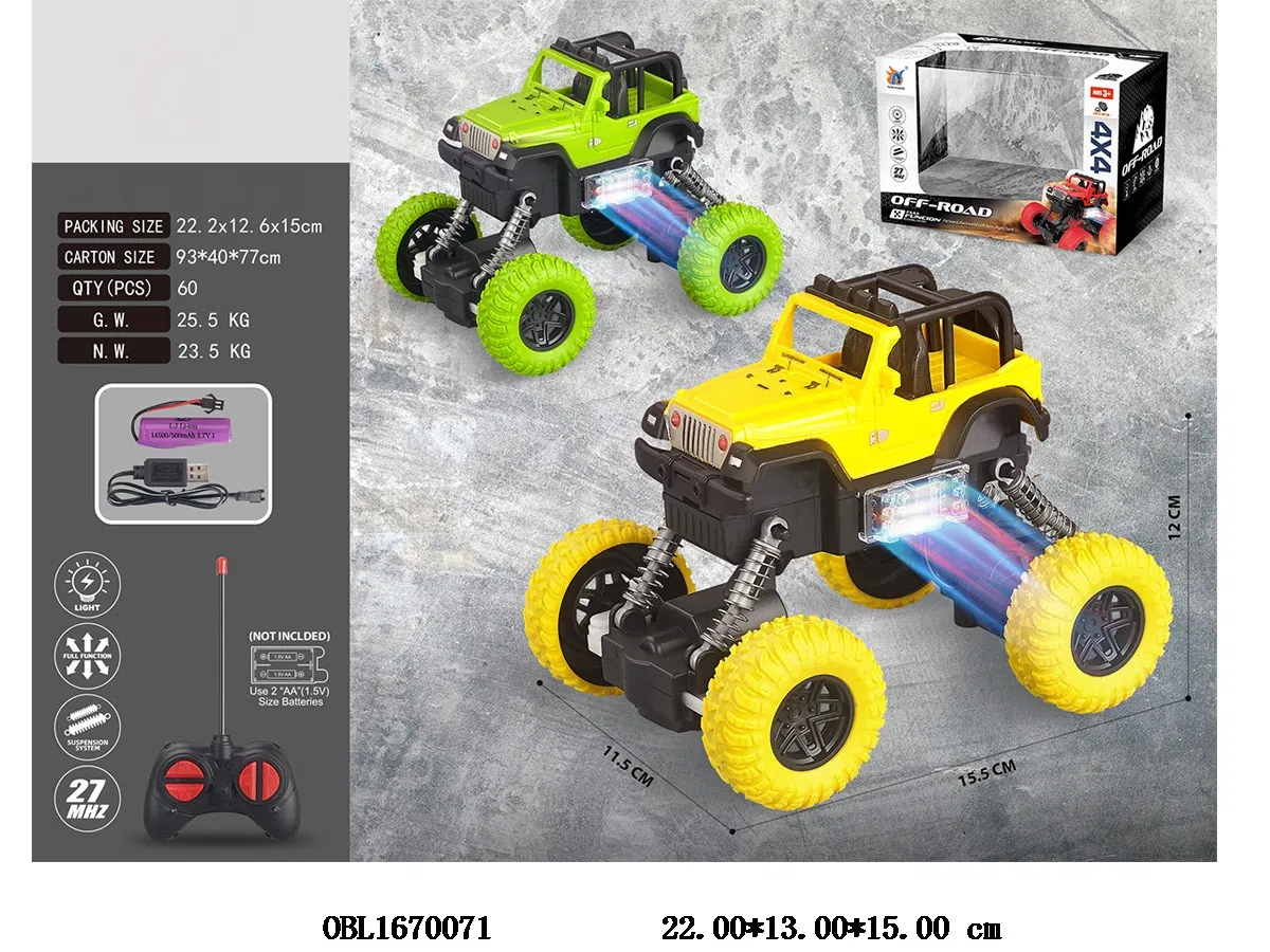 4-way remote control climbing car with lighting and USB cable body 3.7V lithium battery pack electric remote control 2 * AA non pack electric 2-color mixed installation 27 frequency