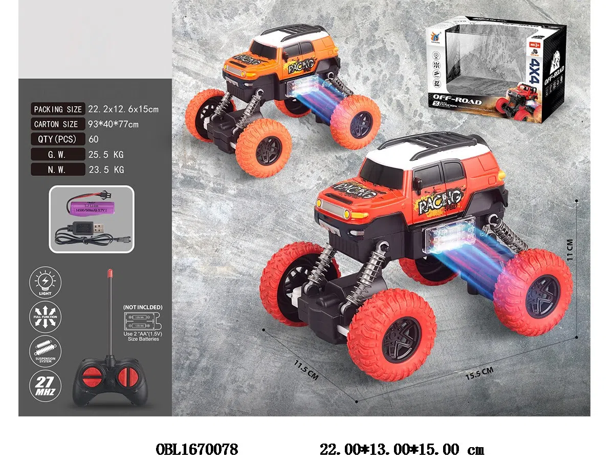 4-way remote control climbing car with lighting and USB cable body 3.7V lithium battery pack electric remote control 2 * AA non pack electric 2-color mixed installation 27 frequency