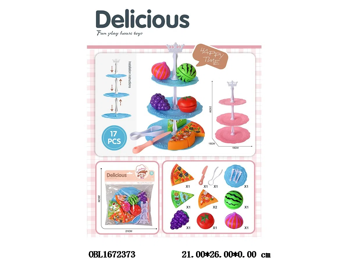 Home > Fruits and Vegetables Set > Fruit and vegetable food set with three-layer cake plate and mixed blue powder