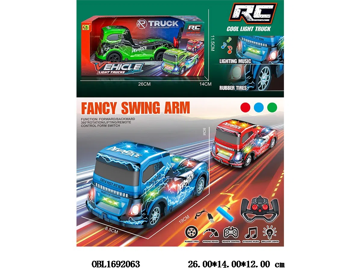 1: 24 way remote control trailer with lights, music and USB cable. Body 3.7V lithium battery included remote control 2 * AA without battery included. 49 frequency red/blue/green