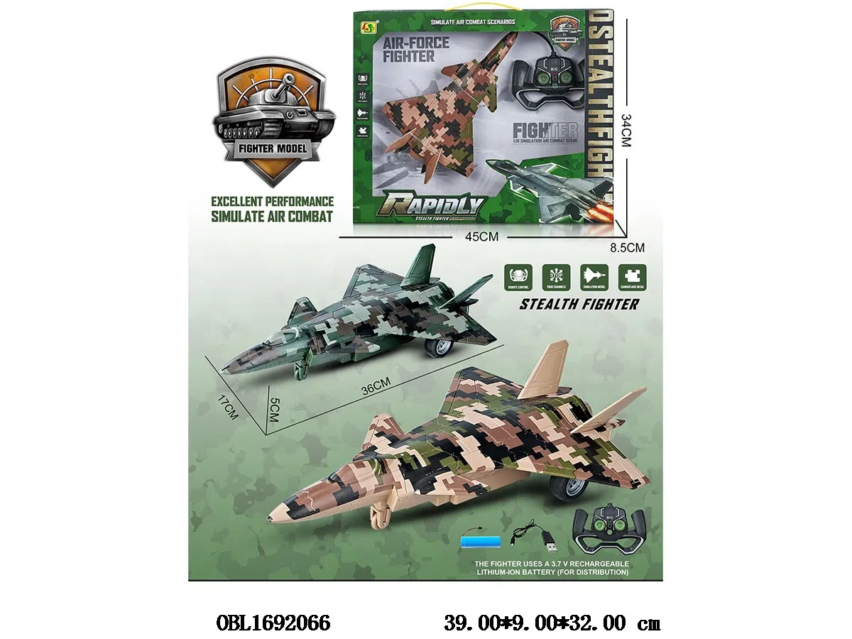 Four way J-20 simulation remote control fighter with USB cable, body 3.7V lithium battery included remote control 2 * AA without power, 49 frequency yellow/green