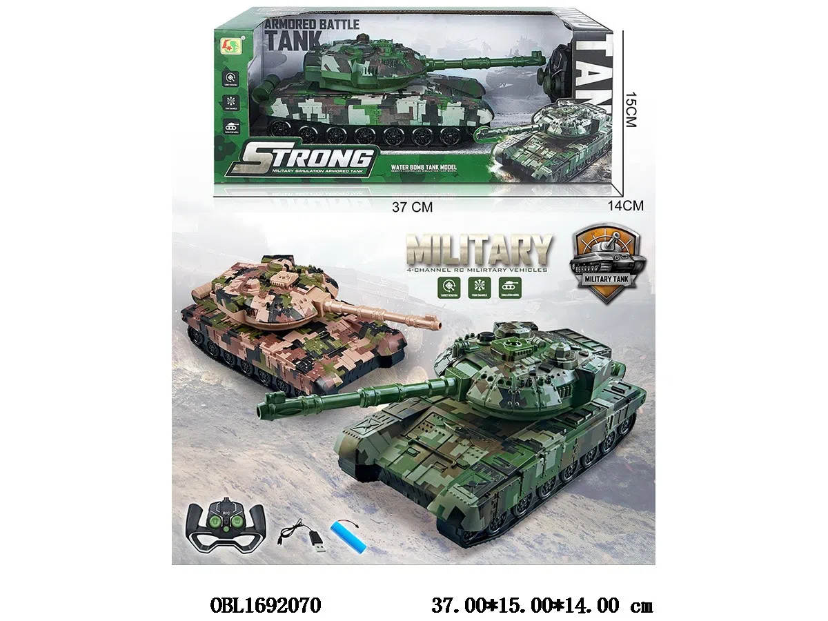 Home > R/C Tank > 1: 12 Four way Remote Control Military Tank with USB Cable Body 3.7V Lithium Battery Powered Remote Control 2 * AA Non Powered 49 Frequency Yellow/Green