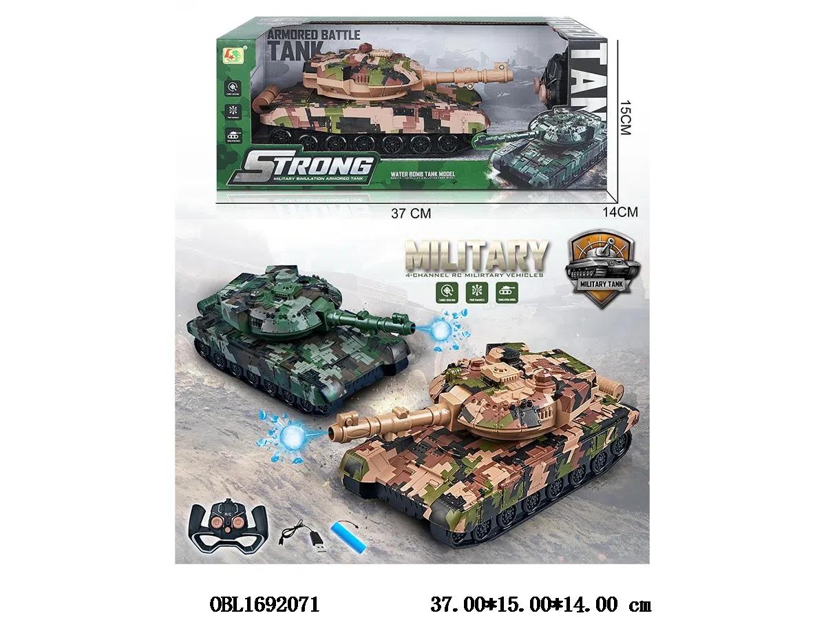 1: 12 Four way Remote Control Water Bullet Military Tank with USB Cable Body 3.7V Lithium Battery Powered Remote Control 2 * AA Unpackaged 49 Frequency Yellow/Green