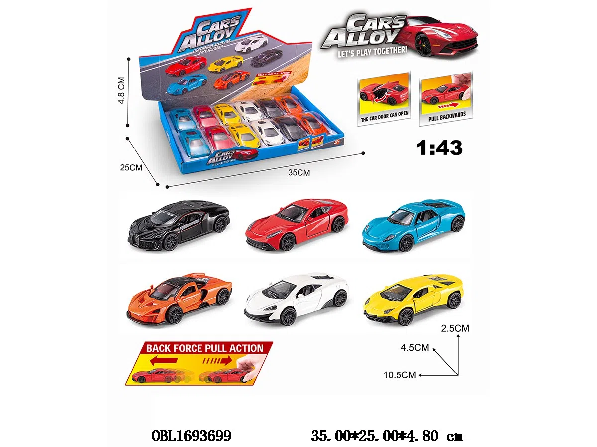 1: 43 inch alloy car can open doors, 12 pieces in 1 display box