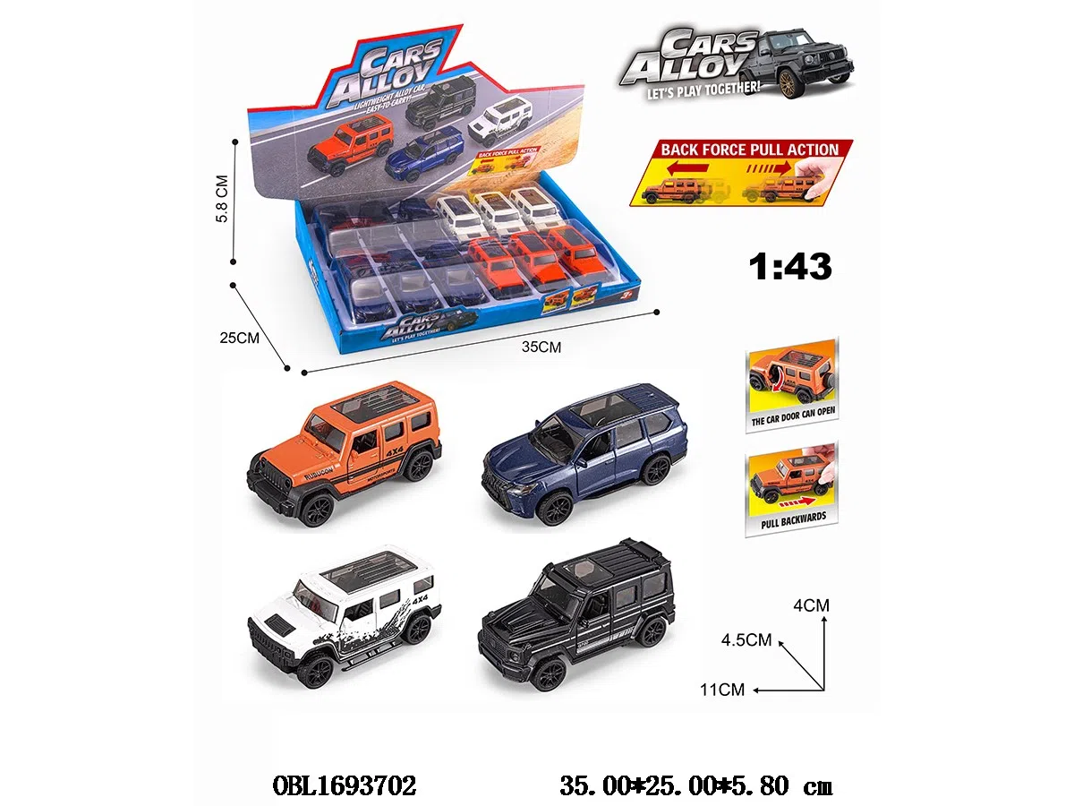 1: 43 inch alloy car can open doors, 12 pieces in 1 display box