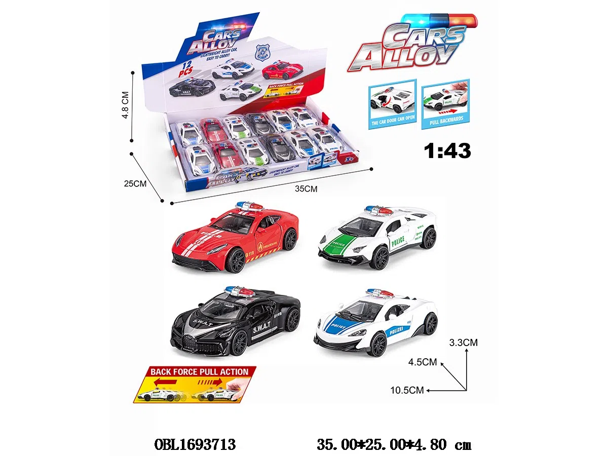 1: 43 inch alloy police car can open doors, 12 pieces in 1 display box