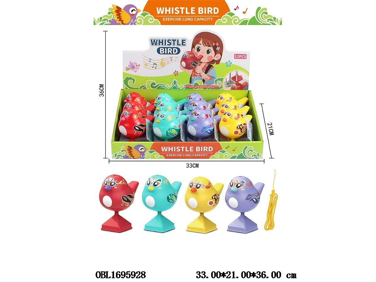 Water bird whistle with hanging rope, mixed with 4 colors, 12 pieces, 1 display box