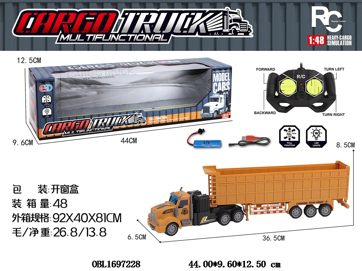 1: 48 four-way remote control trailer with lights and USB cable, body 3.7V battery with power included remote control 2 * AA without power included, 27 frequency