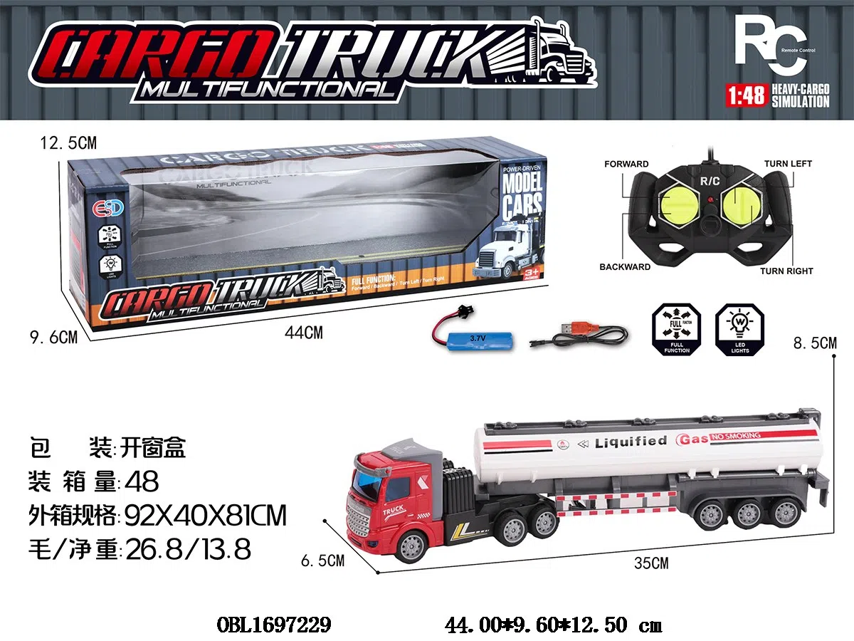 1: 48 four-way remote control trailer with lights and USB cable, body 3.7V battery with power included remote control 2 * AA without power included, 27 frequency